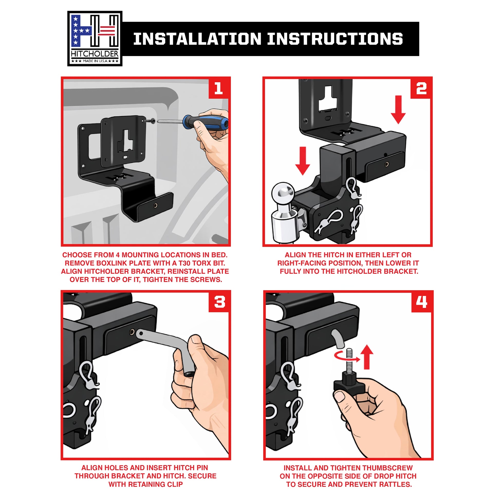 Ambidextrous Hitcholder - allows you to mount it in any corner of your truck bed